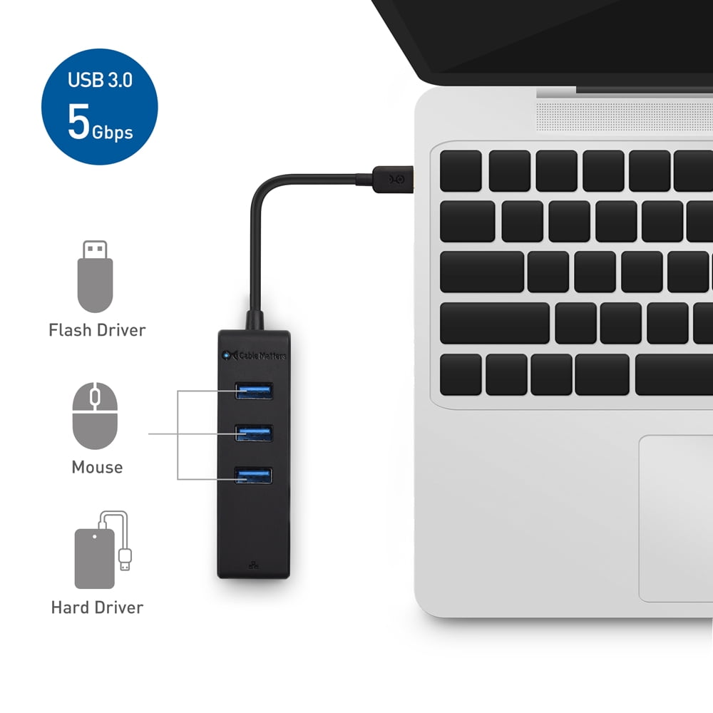 Cable Matters 3 Port Usb C Hub With Ethernet Usb C To Ethernet Hub Thunderbolt 3 Port Compatible With Macbook Pro Dell Xps 13 15 Hp Spectre X360 Surface Pro Yoga 910 And More Walmart Com