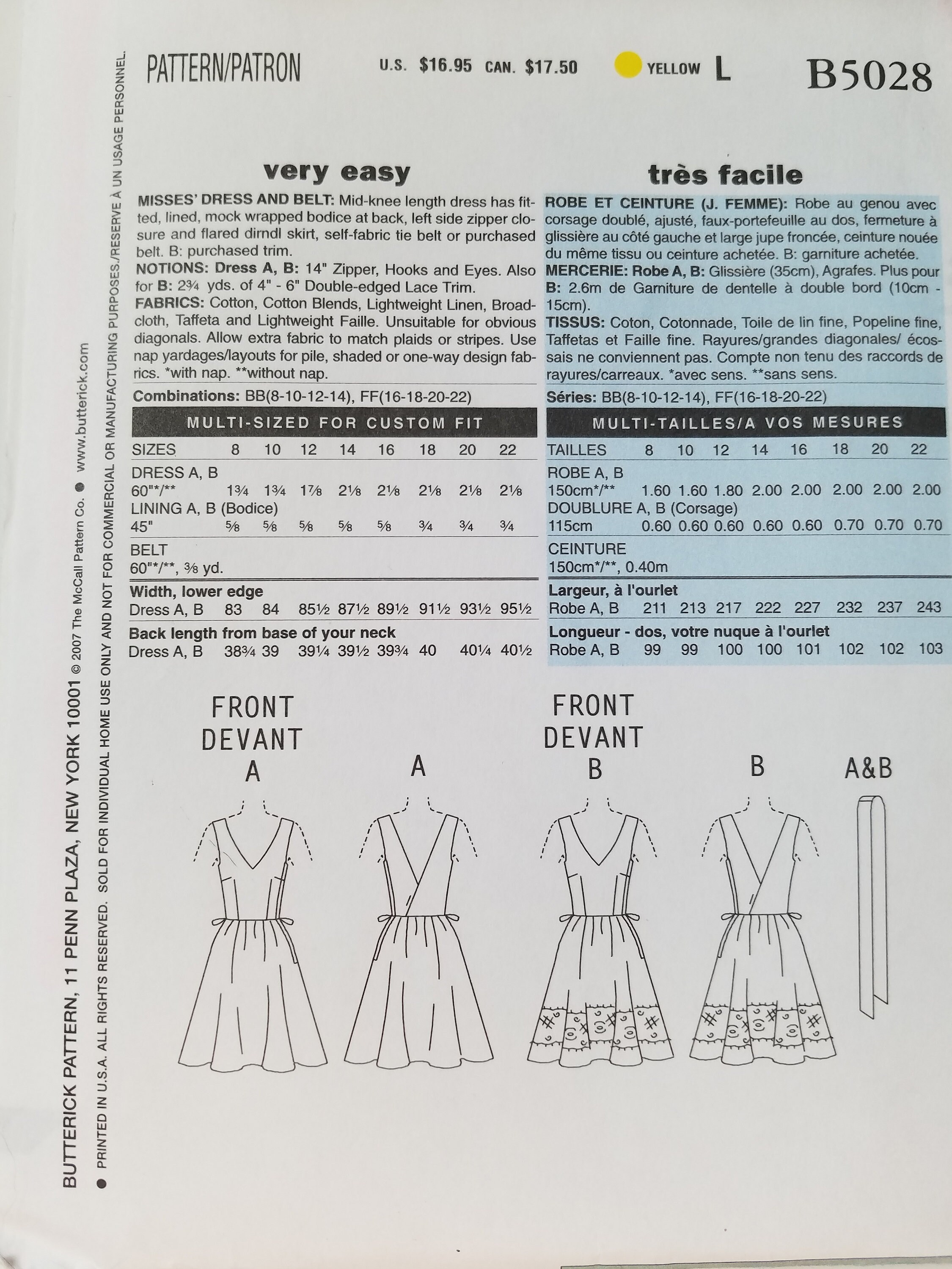 Butterick Sewing Pattern B6873 Women S Dress And Sash Sewdirect Uk